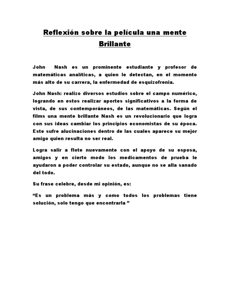 Reflexion Sobre La Pelicula Una Mente Brillante Pdf